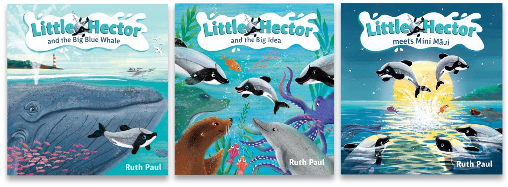 In Little Hector and the Big Blue Whale our small but daring dolphin swims out into the deep blue ocean. He meets many dangers and makes an unlikely friend. Little Hector and the Big Idea continues the adventures, showing that you are a never too small to make a big difference. Little Hector Meets Mini Maui introduces the Maui’s dolphin to young readers and comes out in September 2020.
